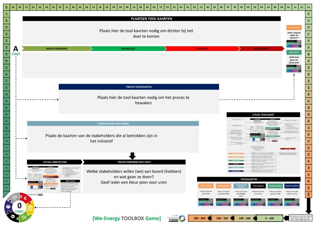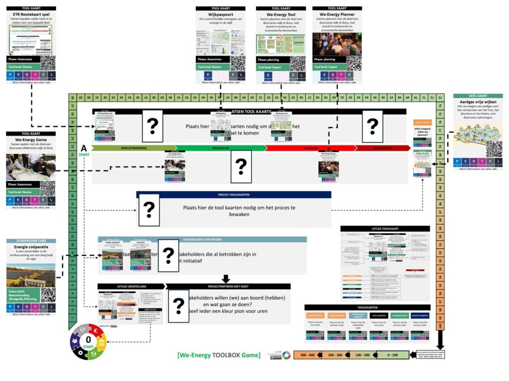 De EnergieTransitie-Routekaart is beschikbaar in spelvorm bestaande uit een kaart en de toolbox kaarten. Aanvullend zijn er twee presentaties bijgeleverd waar het concept van de game wordt toegelicht. De game kan worden ingezet om een duurzaamheidsvraagstuk in te vullen, en te kijken welke tools en methoden binnen de toolbox ingezet worden om een stap te maken in de route. Een gedeelte van deze tools zijn op deze website te downloaden en zelfstandig toe te passen.